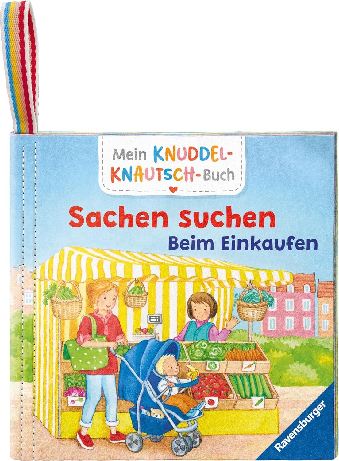 178. Mein Knuddel-Knautsch-Buch: Sachen suchen: Beim Einkaufen, weiches Stoffbuch, waschbares Badebuch, Babyspielzeug ab 6 Monate, Illustration: Denitza Gruber https://amzn.to/47oKkzl ISBN-13 : 978-3473421022